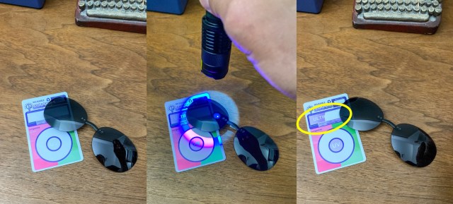 Suppose the flashlight does emit UV rays. How do I know my eyes are not being damaged looking at the UV light reflecting off the tester card? Ah, OK. I should wear a pair of safety goggles certified for UV400. But if I wear these goggles and they actually block out all UV lights, then how do I see the card react to UV rays from the flashlight?