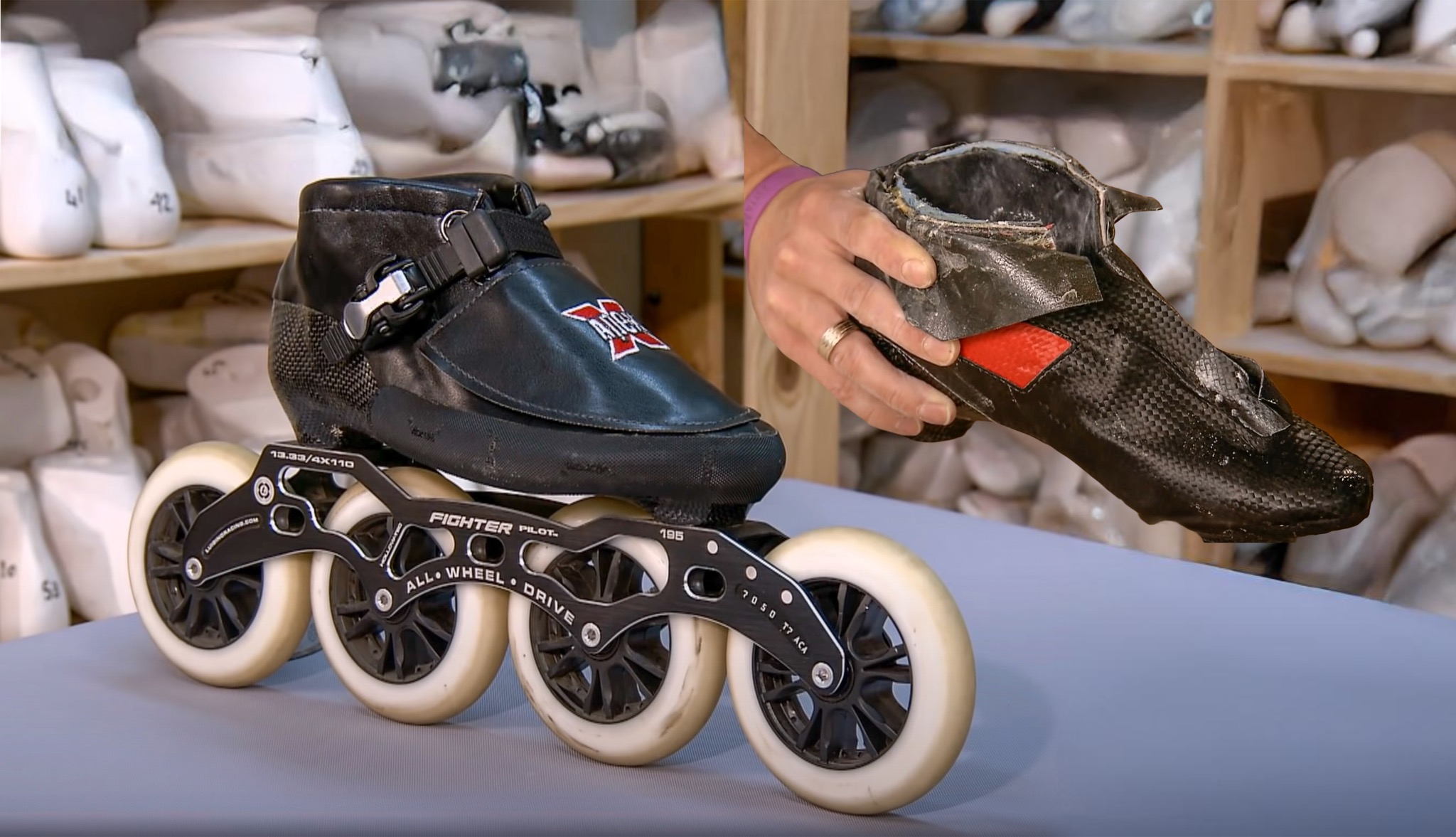 Actual TRUE monocoque “hockey” shell on the left, vs Powerslide Tau- and HC Evo-like “inline” shell
