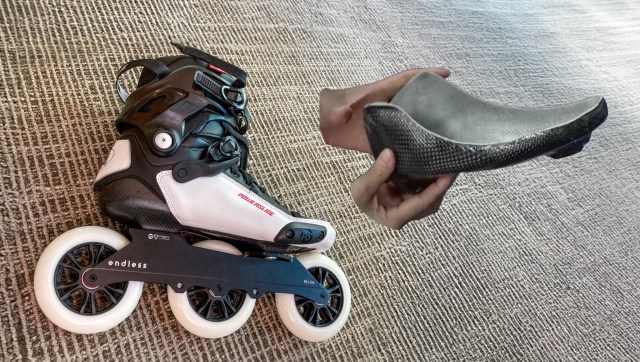 There is a third type of carbon-fiber inline skates, the speed skates. They are in many ways like hockey skates. For one, the same carbon shell construction applies to both ice speed skates and inline speed skates. The shell covers a larger area of a foot, like hockey shells. For instance, eyelets are punched out of the shell directly. In fact, it seems that carbon shells originated with speed skates, before other skating disciplines adopted the same. But you will notice that speed skates don’t have a shaft at all. The collar of the boot barely covers parts of the ankle of the skater.