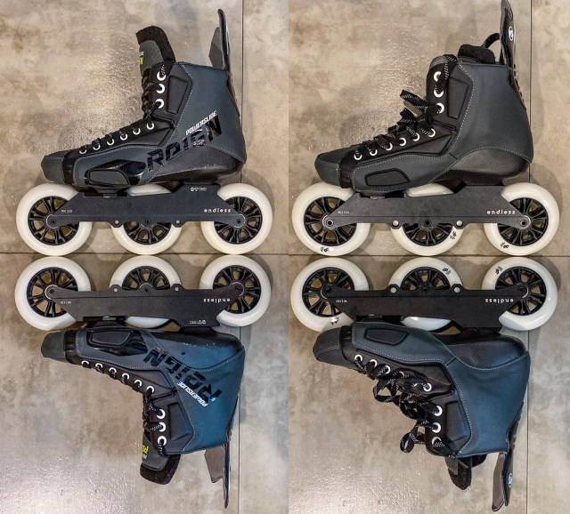 I had to settle with non-hockey boots instead. I did mount an Endless 90 frame on this alternative, with three 110mm wheels, as shown below.