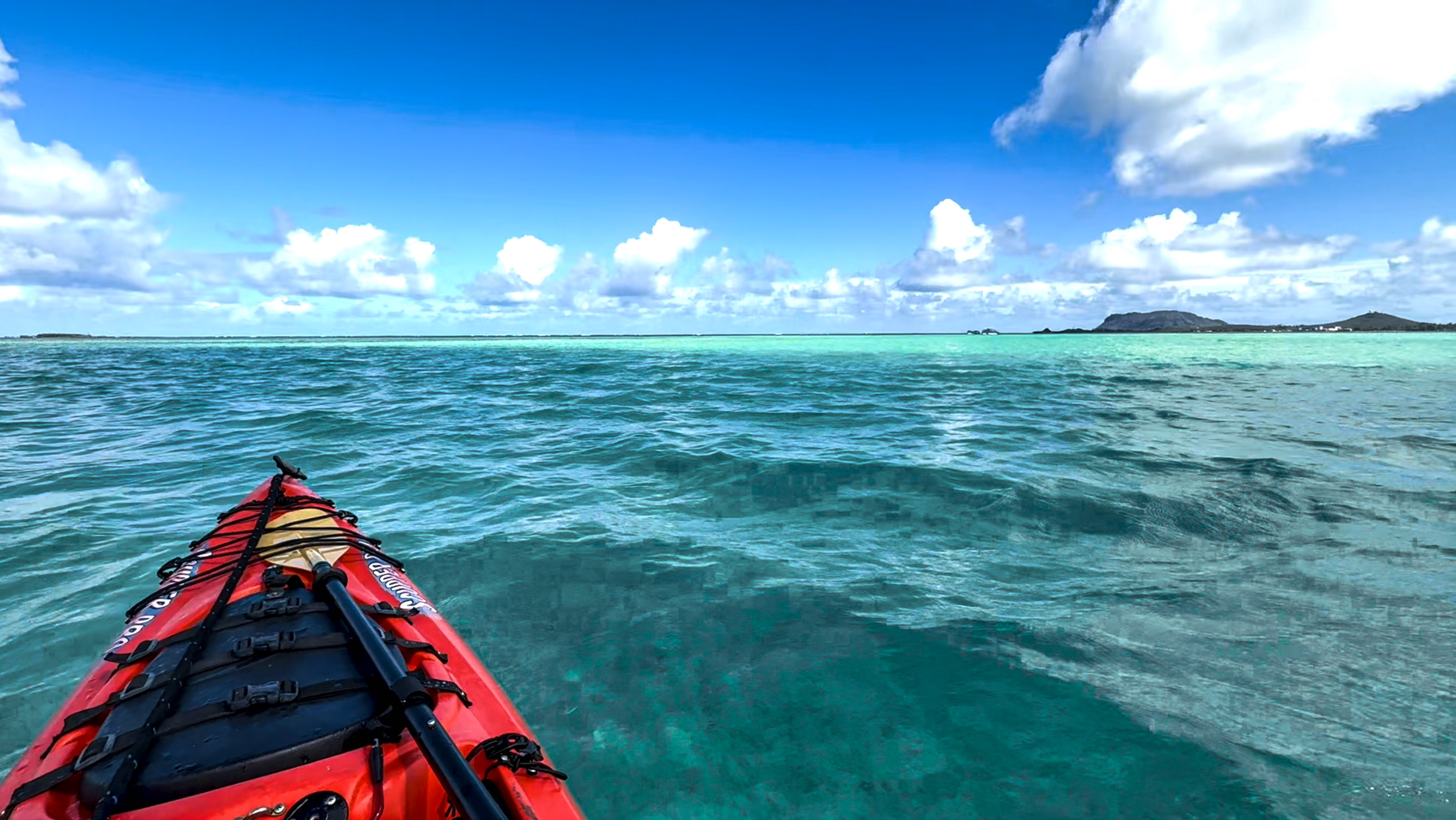 I kept turning my kayak back towards the harbor, second-guessing the sanity of my choice. I saw dark clouds pouring rain over entire towns. I pivoted back towards Kapapa Island and paddled some more, all the while frightened to the core and utterly alone.