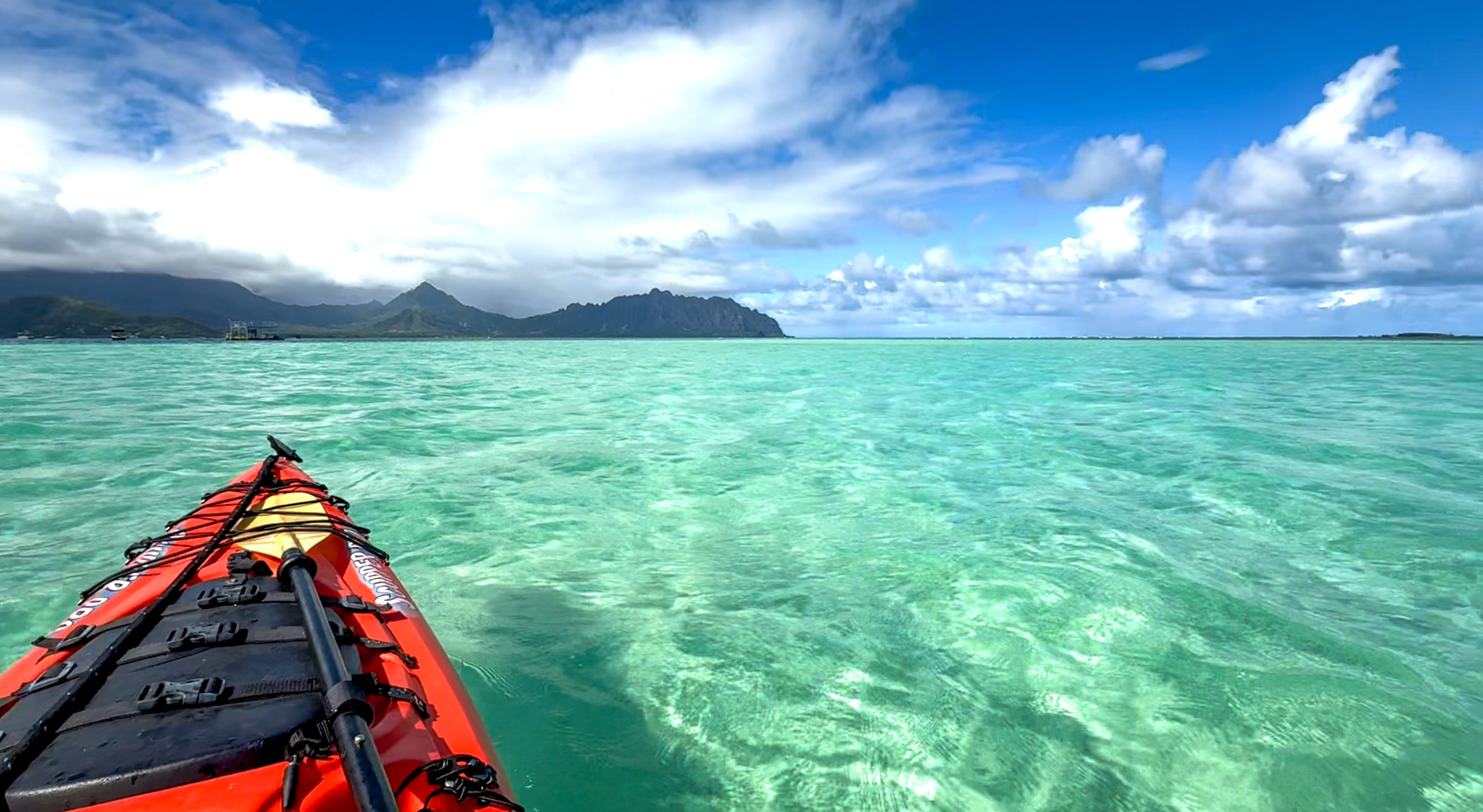On a windy and rainy day in November, I rented a kayak from Go Bananas, and drove to He’eia Kea Boat Harbor. I launched off towards where I thought the legendary Kaneohe Sandbar would be.