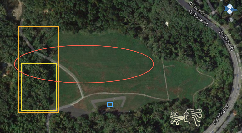 If a pilot does not recognize this phenomenon, his plane would tend to linger over the canopy of the Greater Corner, far away and barely visible. When flying over 60-foot-tall trees, a pilot does not enjoy the same ample room for recovery, as available when flying at 3-mistakes high over grass. When dumb thumbs strike, a plane skimming the treetop has 10 to 20 feet of working space, not the usual ground-to-plane height of some 80 feet. It is almost as if one were flying a plane at 10 feet above ground, two runway-length away. And this is the number one cause for losing planes to the Corner of the Lost Planes, marked as a yellow rectangle on the map – a plane either drops below canopy before its pilot completes recovery moves, or rams sidelong from above the Greater Corner into mighty tall trees in the Corner proper.
