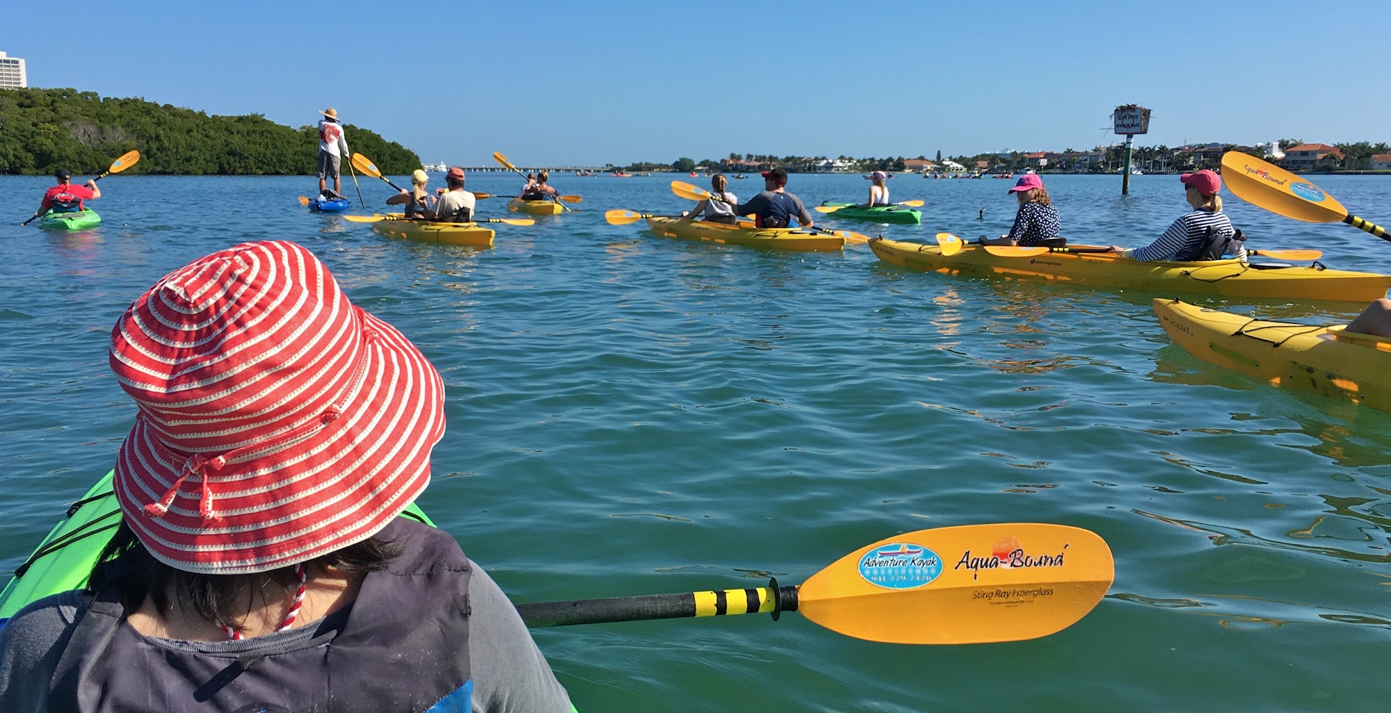 We didn’t have to agonize over itinerary on day four. We signed up online, for a guided kayak ecotour the day before, with Adventure Kayak Outfitters. We launched from the South Lido Park at Lido Key, with a crew of a dozen kayaks, some singles and others tandems.