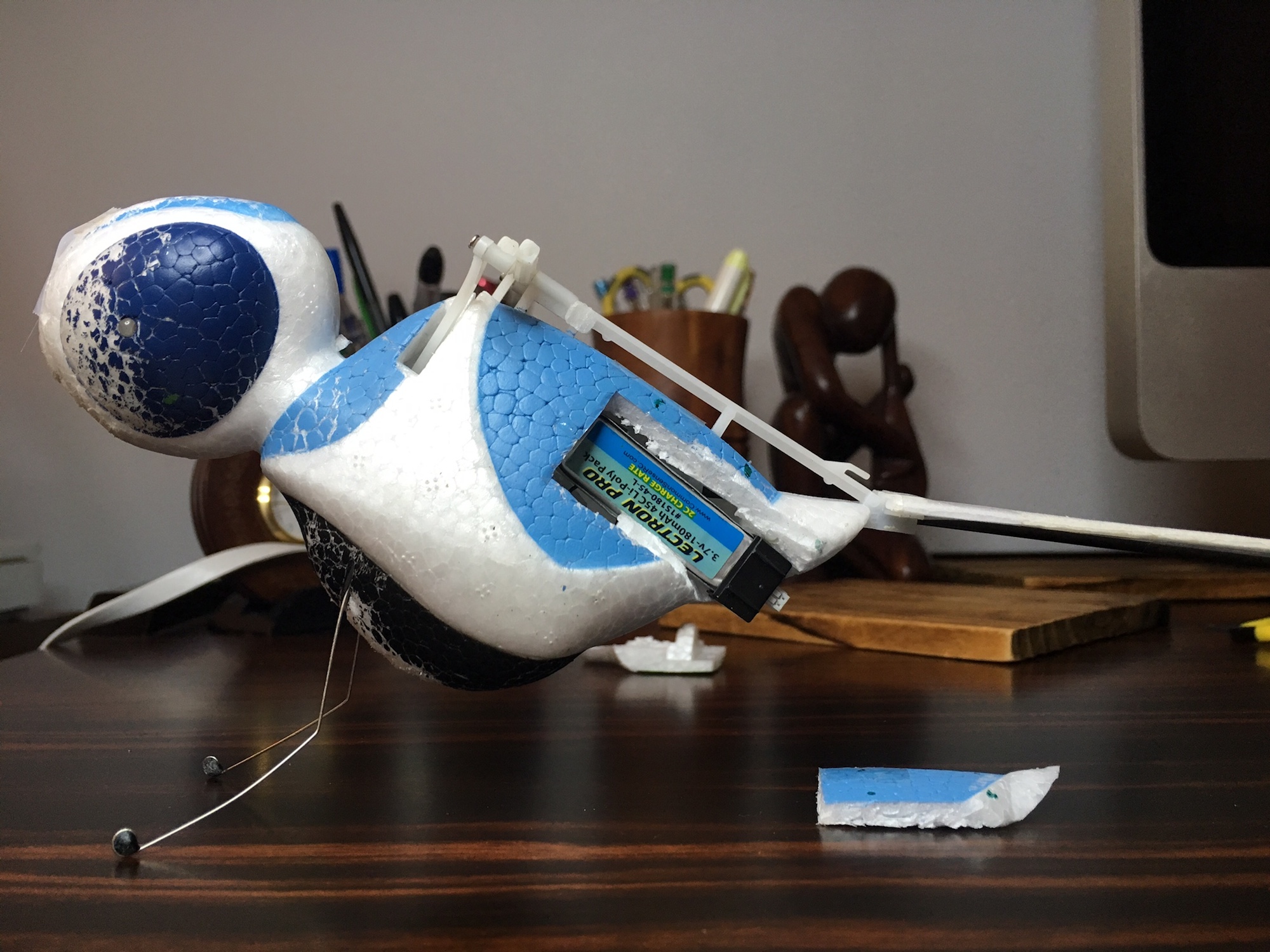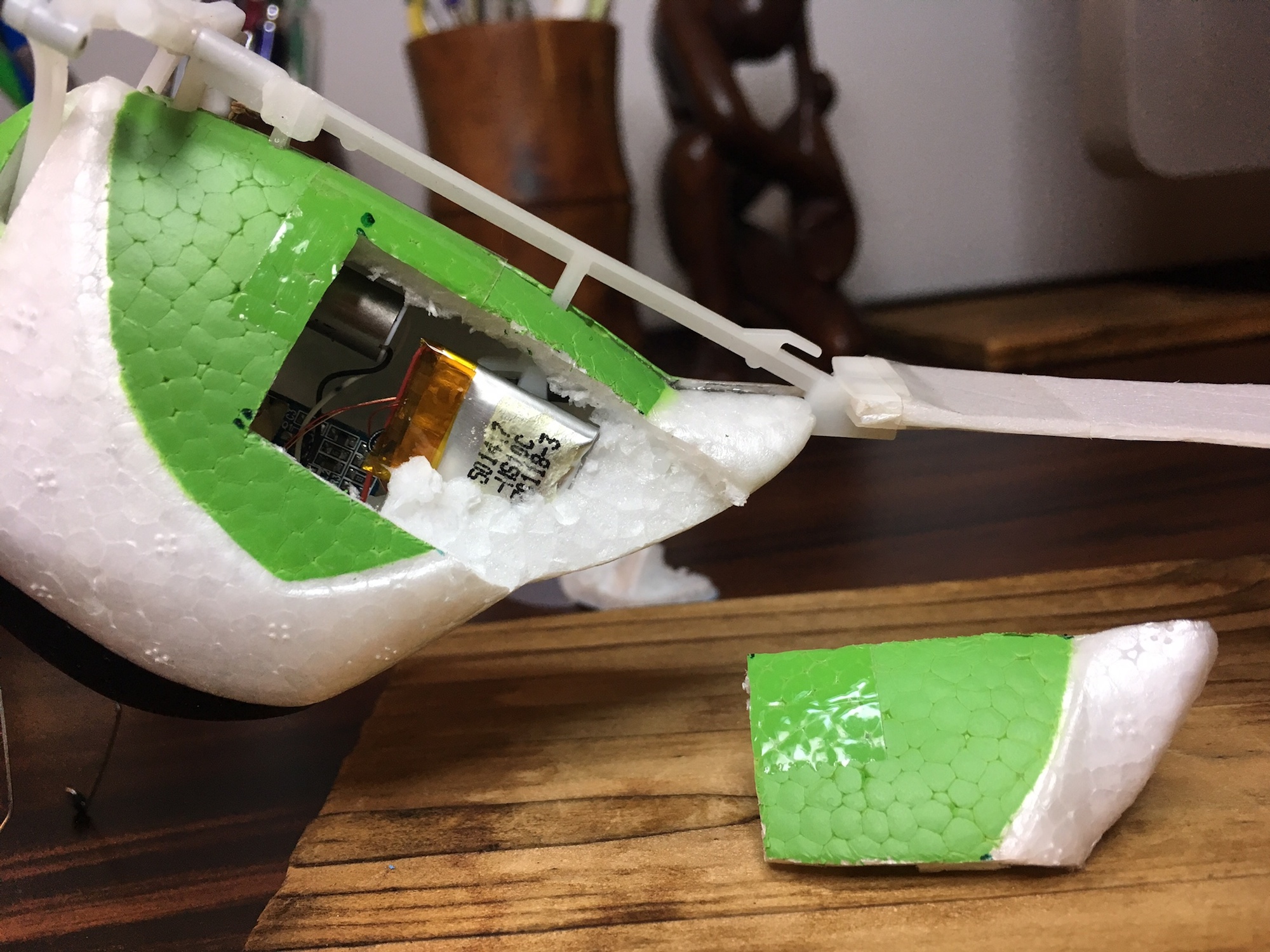 Now the bird could barely ascend at full throttle. So I ripped out the metal magnet rest from the belly.