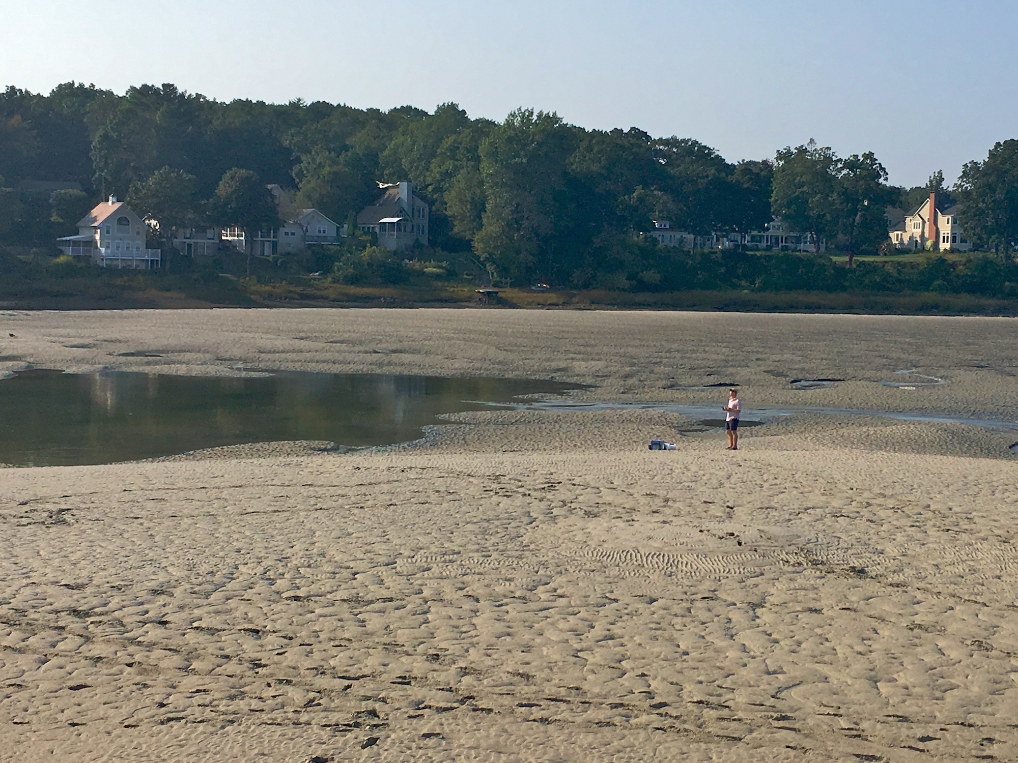 Enjoying a beer on the deck overlooking an emptied Ogunquit River at low tide
