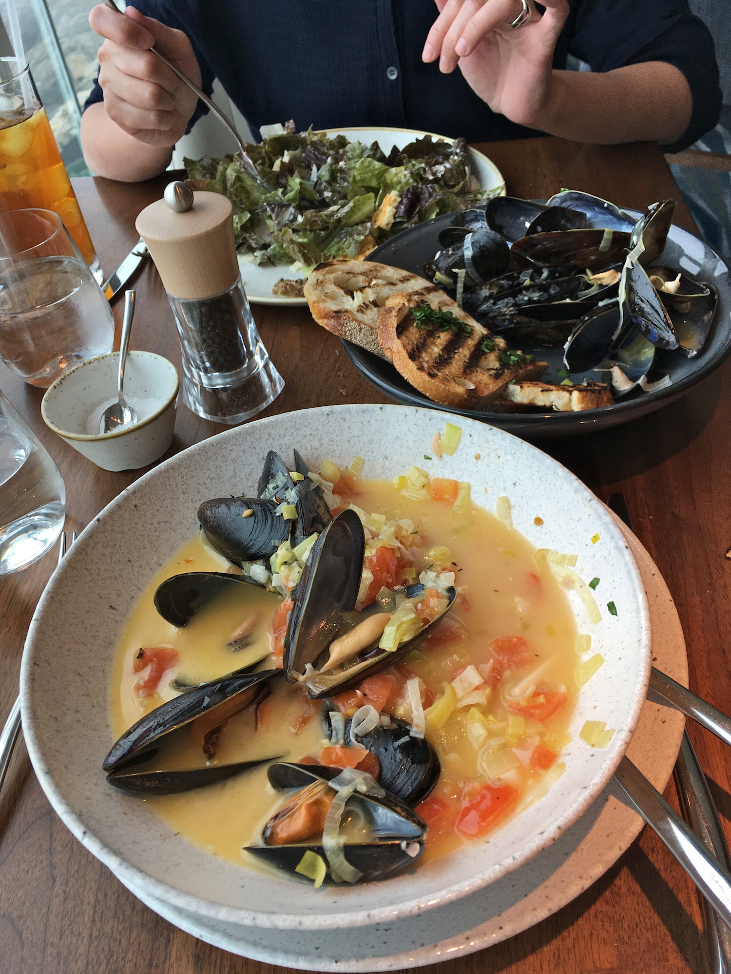 Mussels are one of my favorite food items. These were huge and delicious. It did not occur to me to take pictures of the dish until after I ate almost all. Of all mussel pots I’d ever had, only one beat these in actual size of mussel. And that one was advertised explicitly as “giant mussels”, and the dish came with a mere 5 of them.