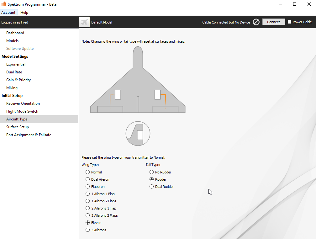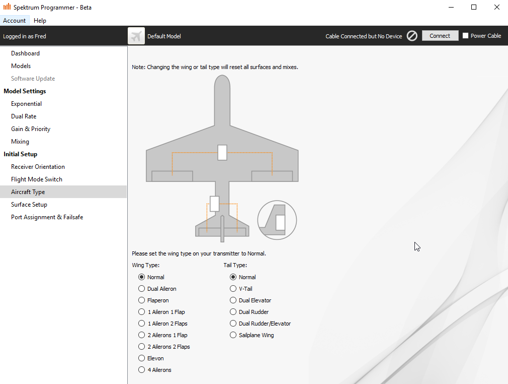 Why would I have to set normal wing and tail type in TX?