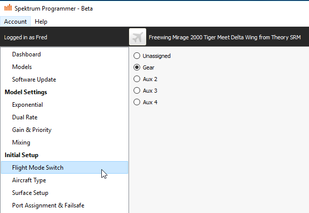 Selecting a channel for the flight mode switch
