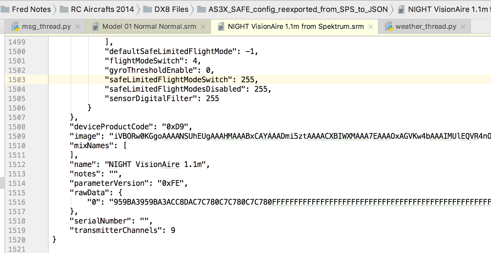 Note that raw SRM files downloaded from Spektrum contain only a few human-readable fields. The rest of data are encoded in the rawData section. As will be shown later, the SPS can import and re-export an SRM file. When re-exported from SPS, the output file will have rawData decoded into human readable fields.