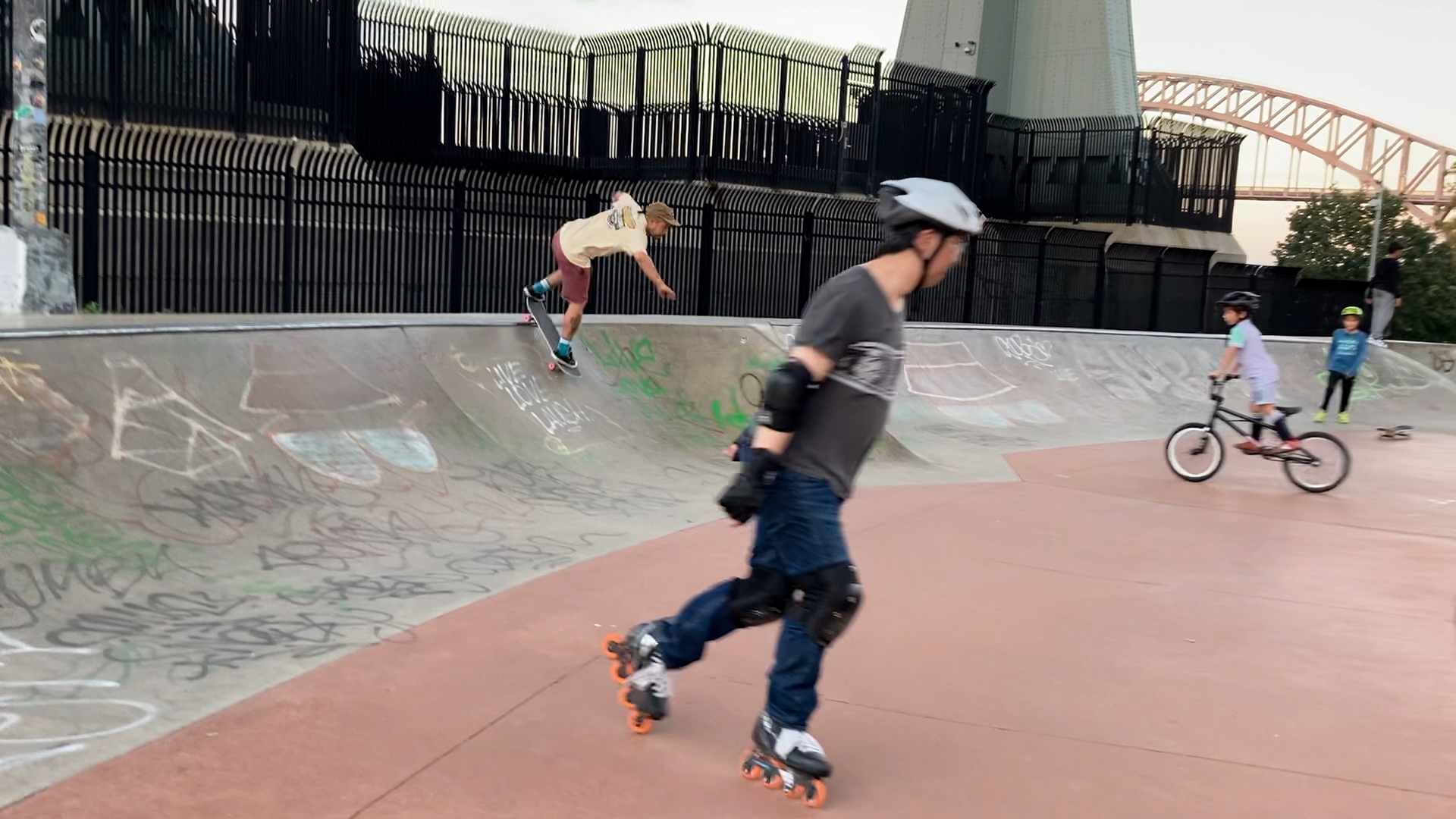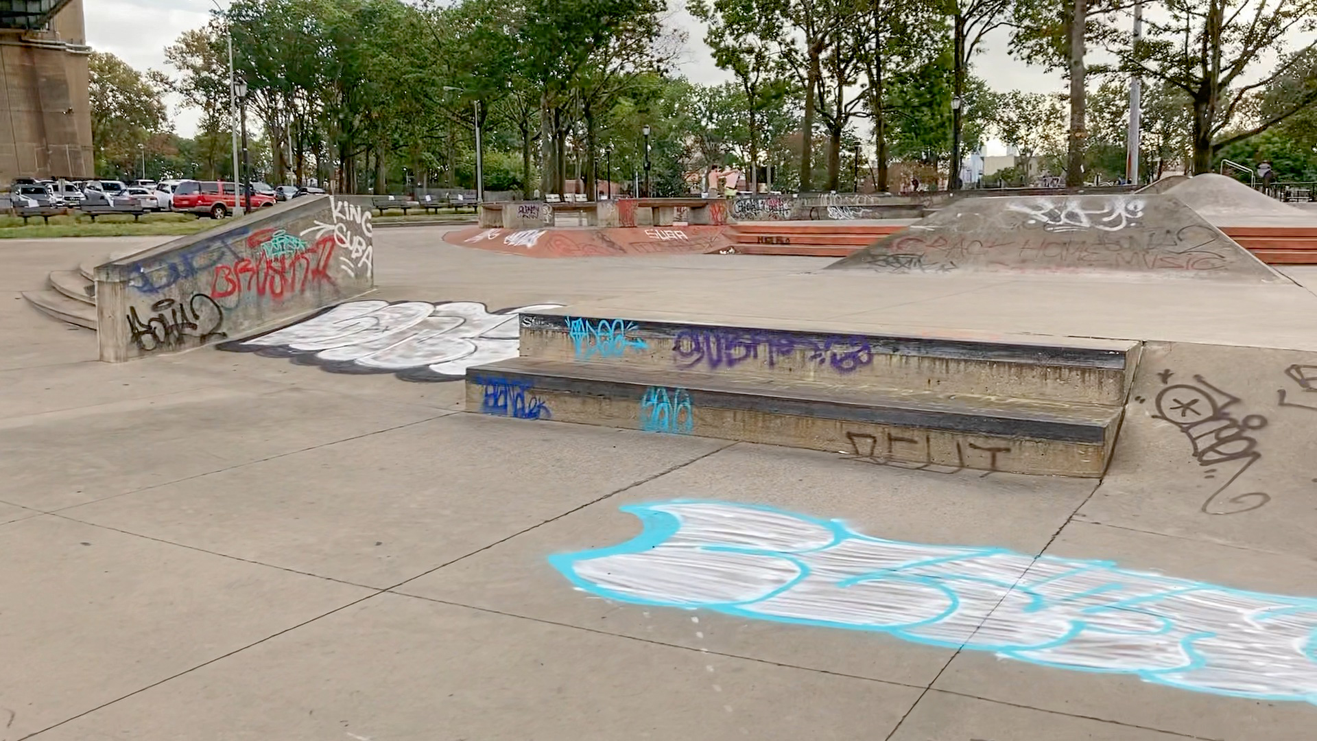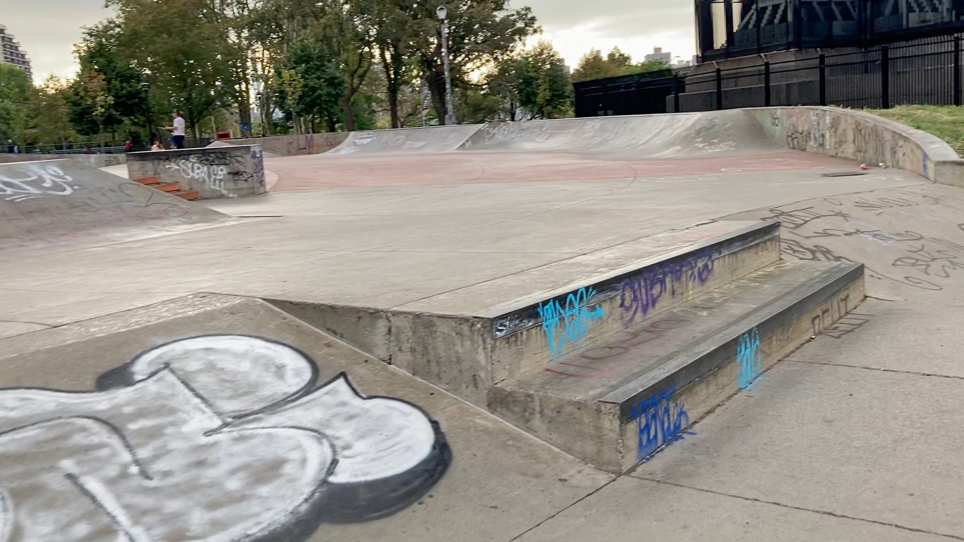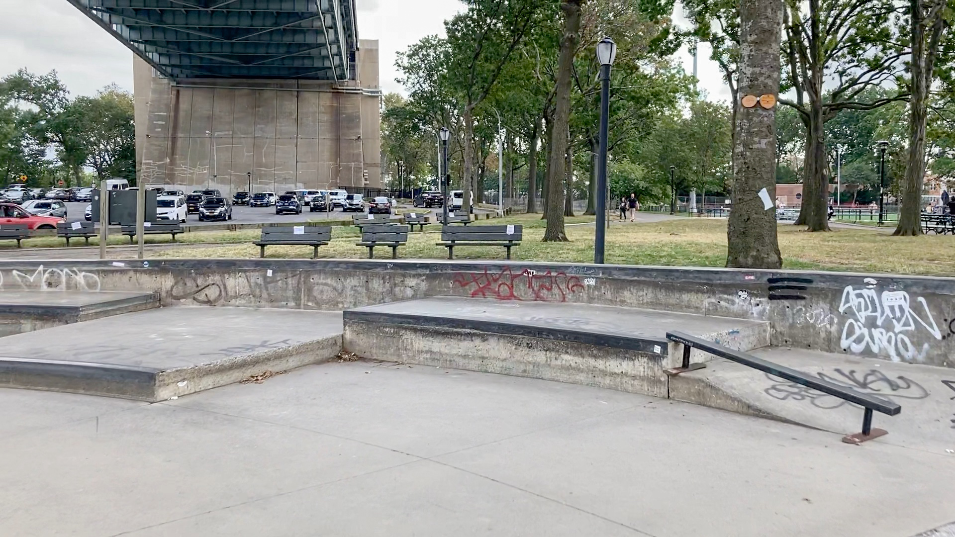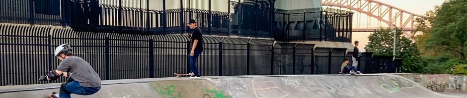 Astoria Skatepark is located right under the Triborough Bridge, in Queens. It is a 21,500-square-foot installation with transitions on three levels of surfaces including concrete and bricks. For inline skaters, there are also paved trails around the Astoria Park, and an entire shoreline street closed to motor vehicles for bikes and skaters. This is a part of my Public Skateparks on Long Island series.