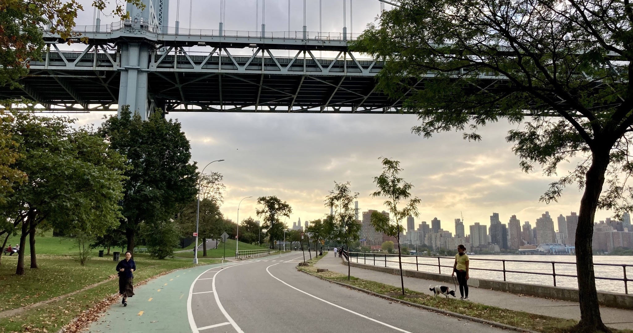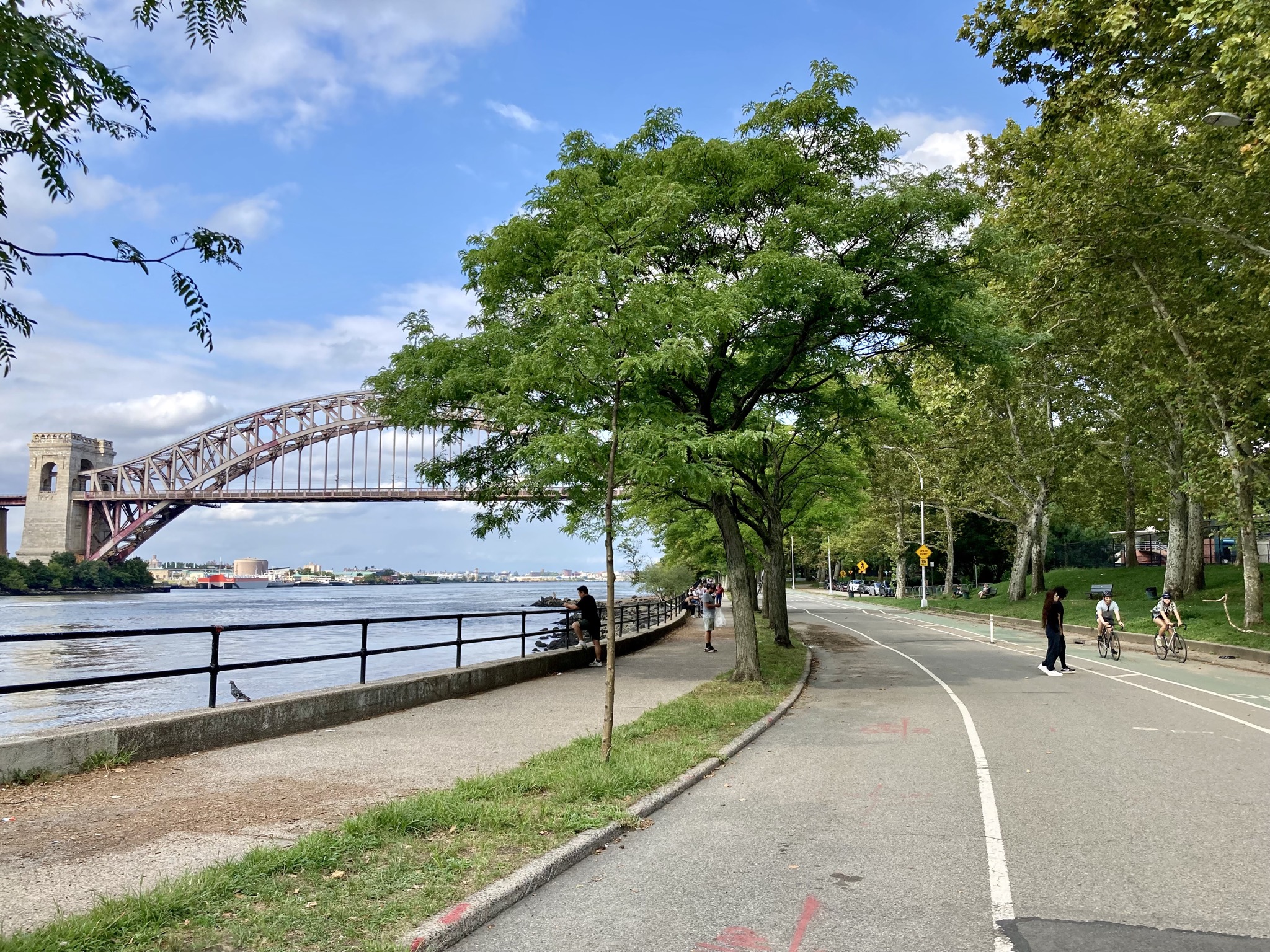 An entire shore road is cordoned off to serve as a biking and skating trail.