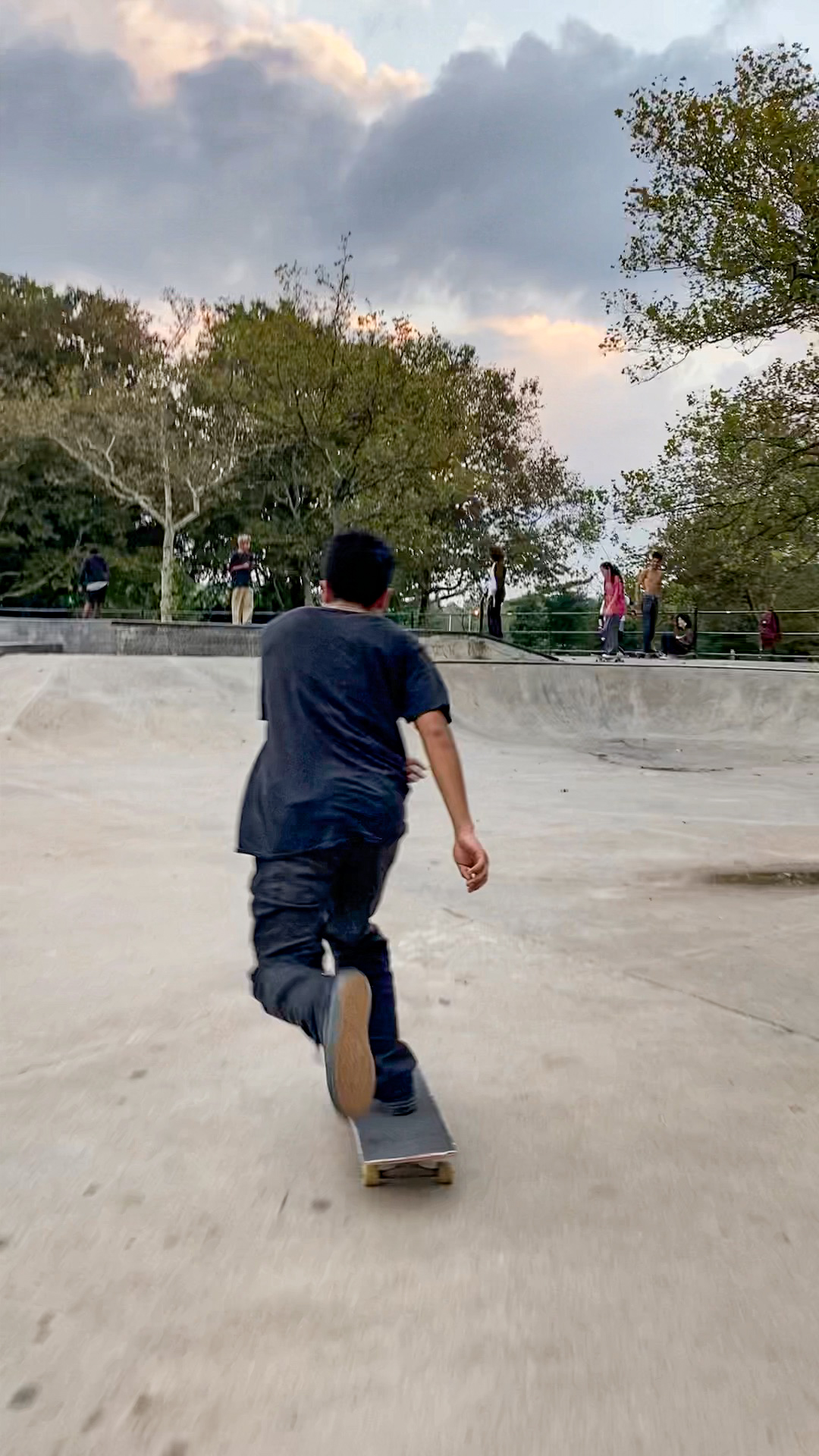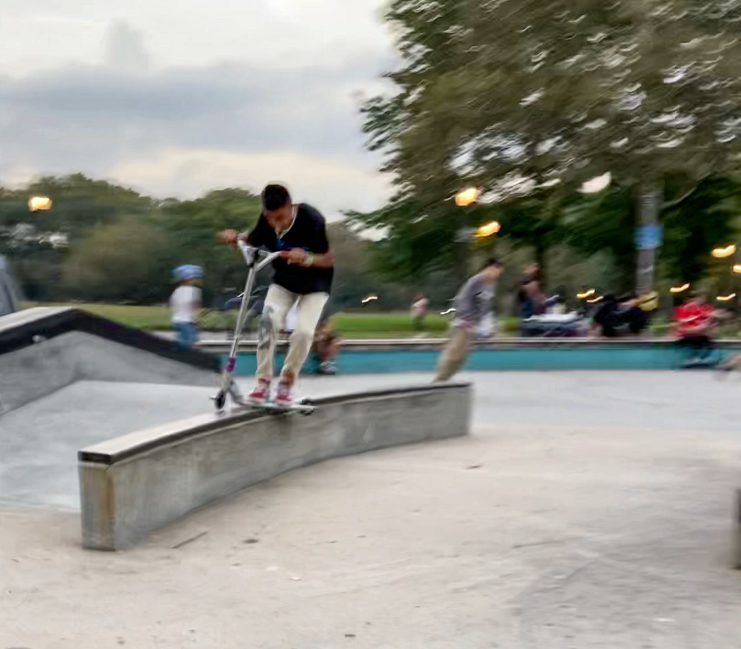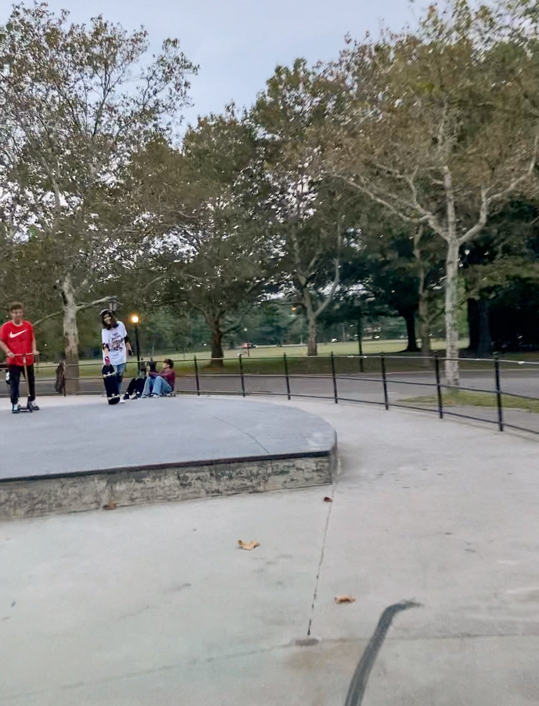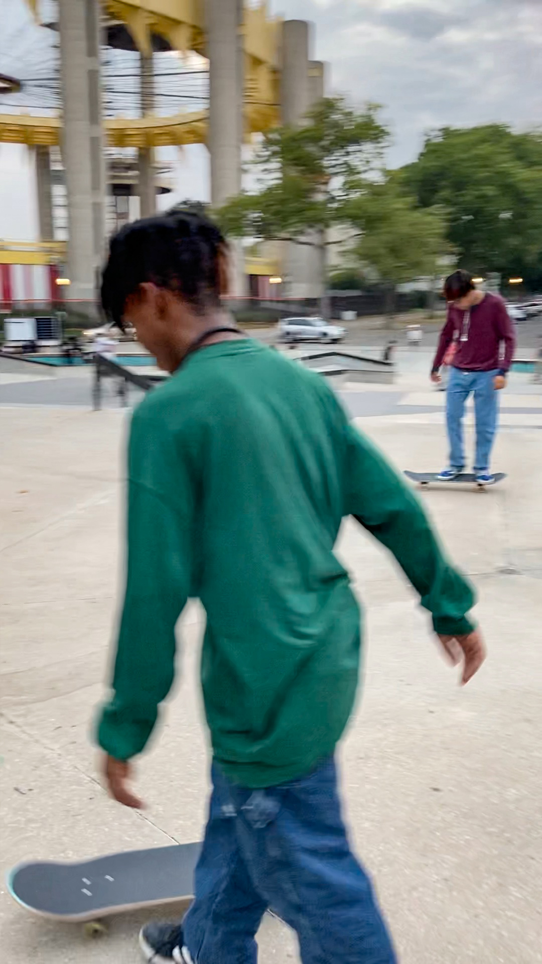 Some skaters hang out under the Unisphere, using the base of the fountain as a skate rink.