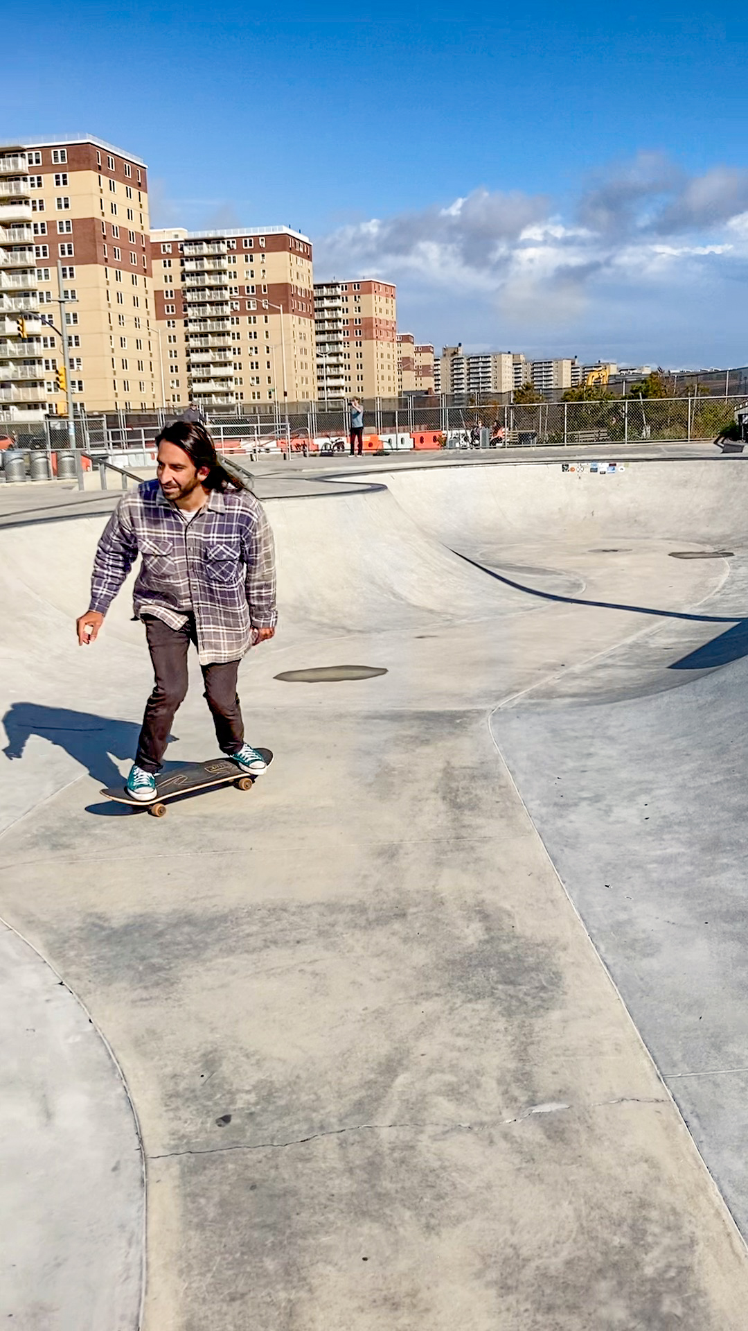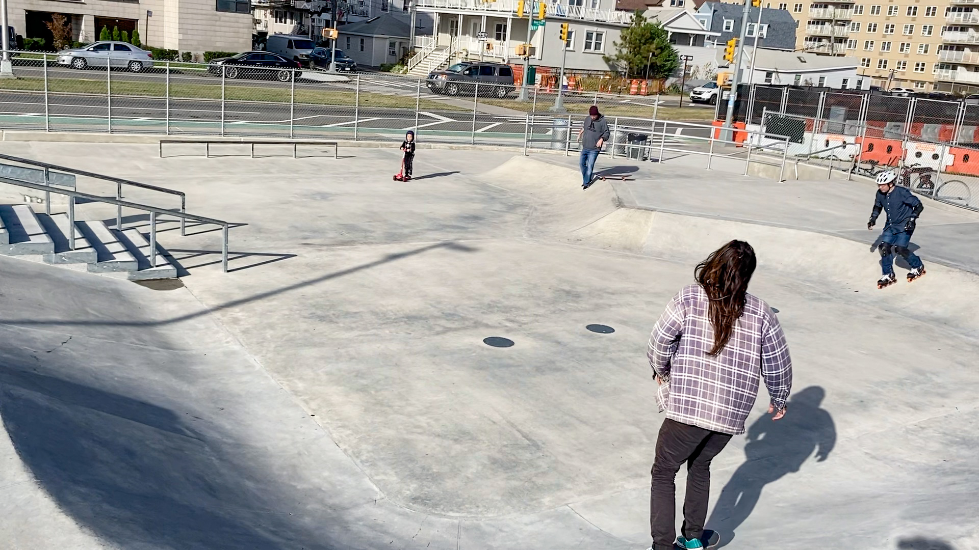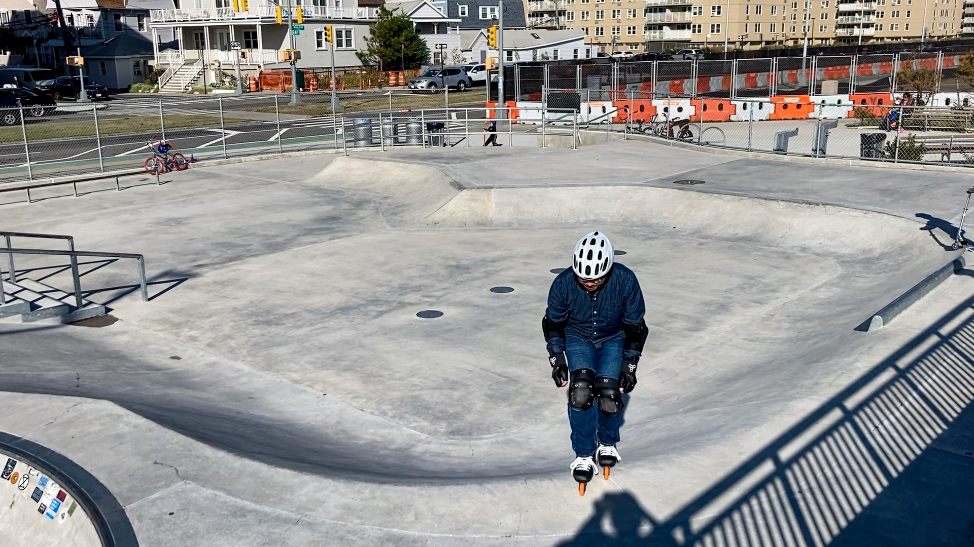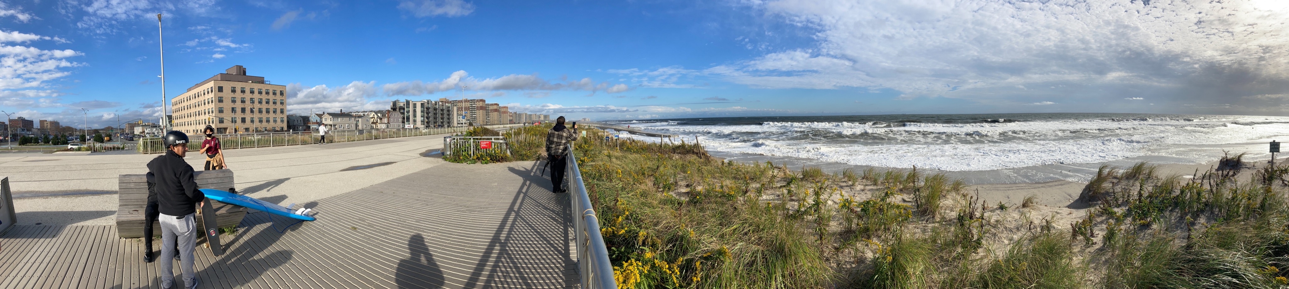Rockaway Skatepark in Queens was destroyed by Sandy. It was rebuilt, then reopened in 2020. This new and large facility features butter-smooth surface at the writing of this article, with both street and transition elements, plus a long bowl which connects with the main skating plaza. Rockaway Skatepark is located at the west end of Rockaway Beach. The new boardwalk passes next to the skatepark. And the Atlantic Ocean is just 200 feet away. Its sister Far Rockaway Skatepark is located at the east end of the same beach, 3.5 miles away. This article is a part of my Public Skateparks on Long Island series.