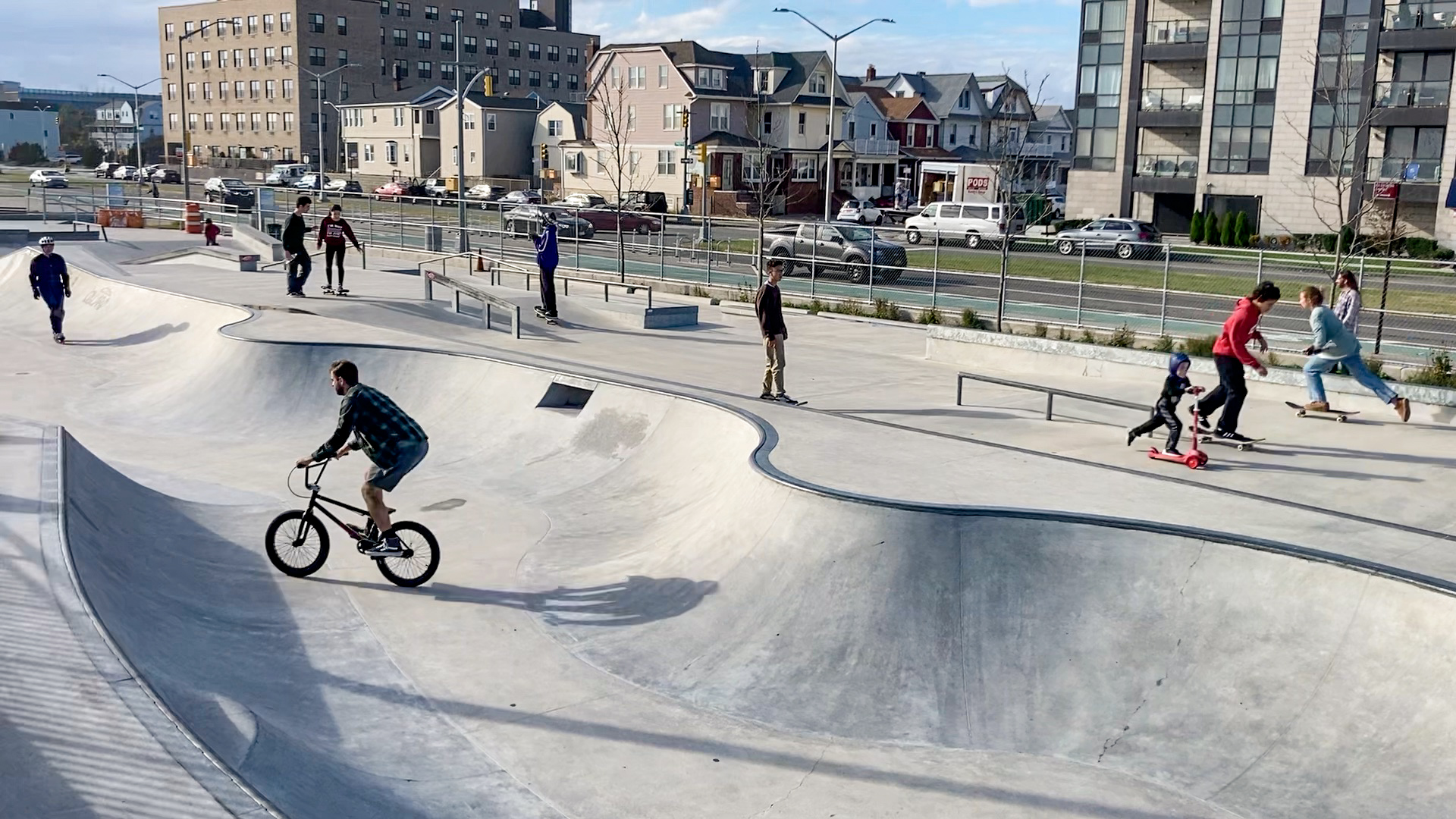 Here is a 360° view of the main skate plaza. Click on the image below to activate the 360° view. Then drag the image to change your view.
