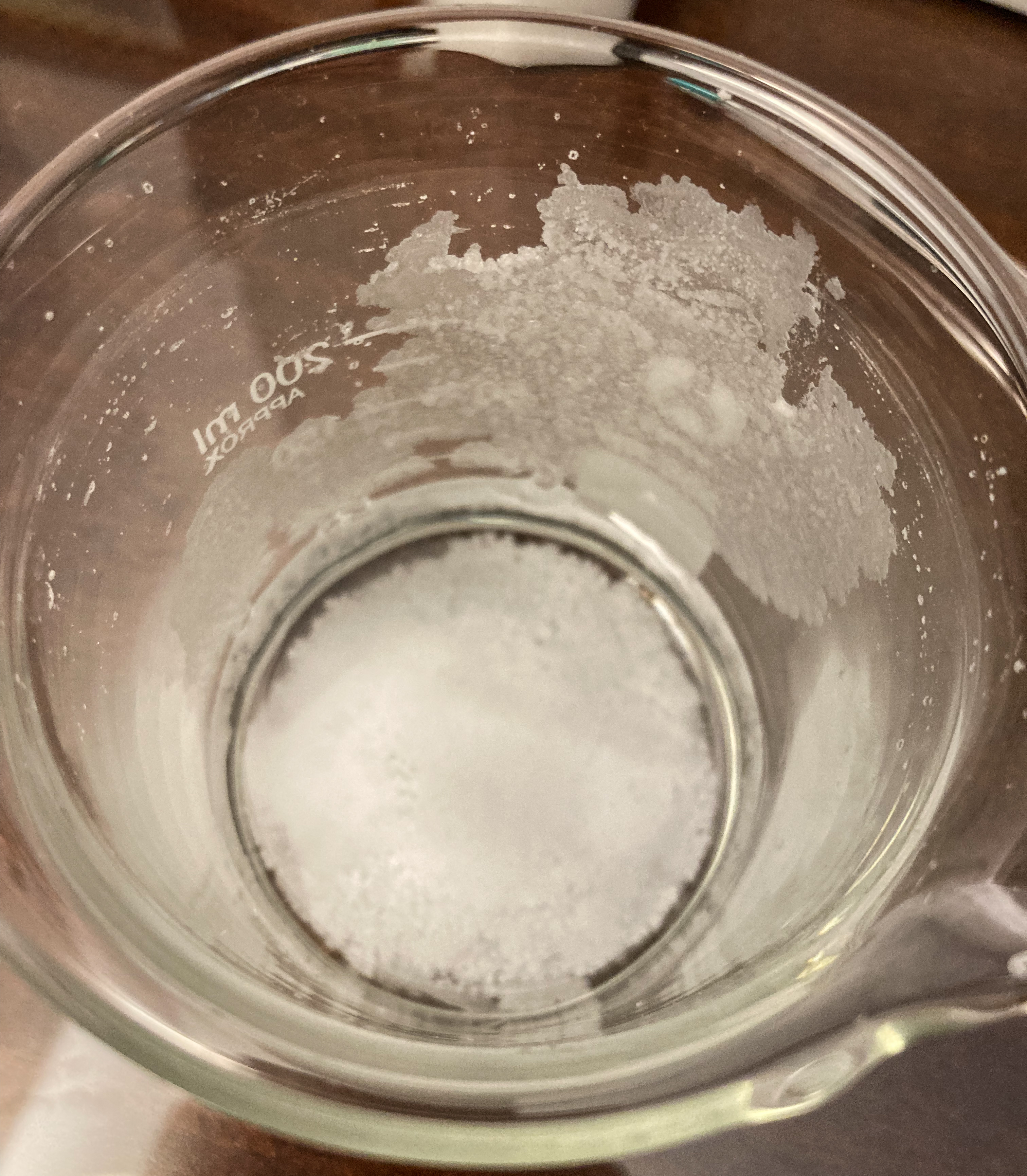 But there were crystals forming on the surface of the solution as well. That was unexpected. But I suppose it did make sense. I didn’t think much about these surface crystals. I took a pen and knocked all of those annoying surface crystals down. They all sunk to the bottom.