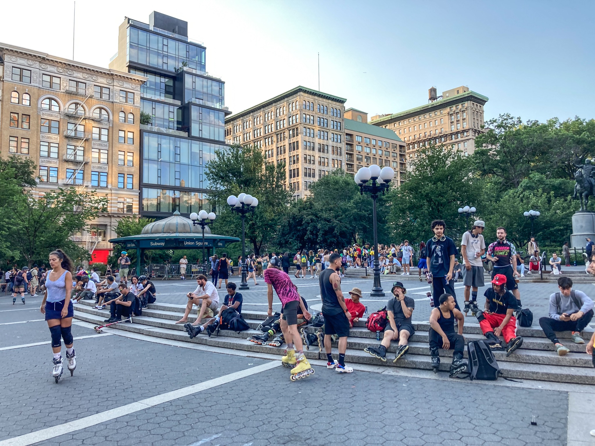 You don’t see pictures here on this article showing skaters coming back to Union Square, at the end of the June 29th 2022 trip. That is because I got leg cramps as we came out of Central Park. I never finished the last leg of the circuit. Now, it was a hot day. So I brought and drank two bottles of water. And that wasn’t enough. I chalk it up to a lack of electrolytes. I have been packing Gatorade ever since. But I also confess to never having skated for 12 miles in a day, prior to this expedition. Perhaps my muscles simply couldn’t sustain continued skating for two hours.