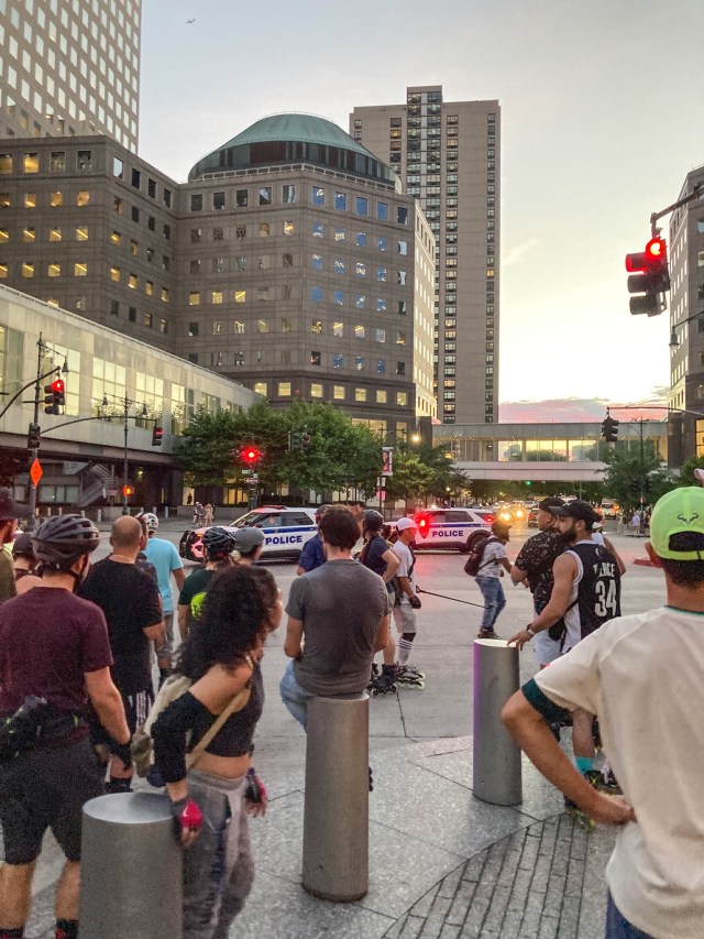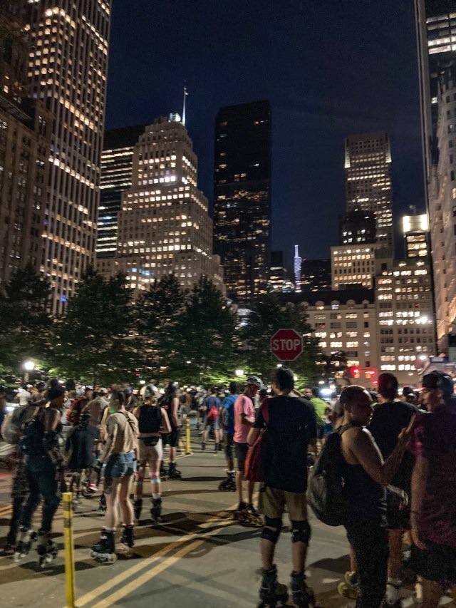 On a different day, skaters gathered at Hudson River Greenway midway through our night journey.