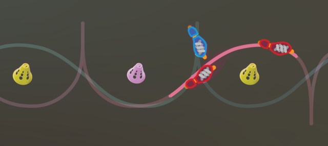 This fall is how energy is injected into Mabrouk. As mentioned, no skates ever leave the ground in Mabrouk. So a skater doesn’t “kick”, in the traditional skating sense, to propel himself forward. By inducing a fall starting at p1, the skater converts potential energy into kinetic energy. Then he moves the blue left skate into the correct position at b1, to catch himself and recover from the fall. This recovery is done without absorbing the kinetic energy from the fall. Instead, the recovery in Mabrouk channels downward (kinetic) energy into a forward-moving (kinetic) energy, to perpetuate the forward momentum of Mabrouk. As you will see, this energy conversion happens at every balance moment in Mabrouk, when a non-gliding skate becomes a gliding skate at the balance moment.