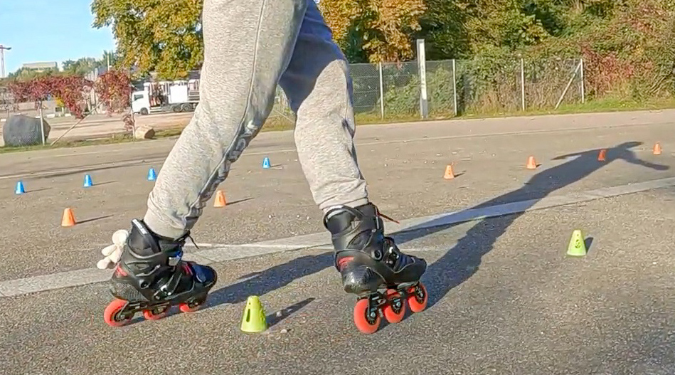 Following is a slow-motion clip showing one cycle of these four slalom components. The clip loops automatically by default. Focus on the cones, and how the two skates go around them. Identify the four symmetric distribution points s1, s2, s3 and s4 in this video.