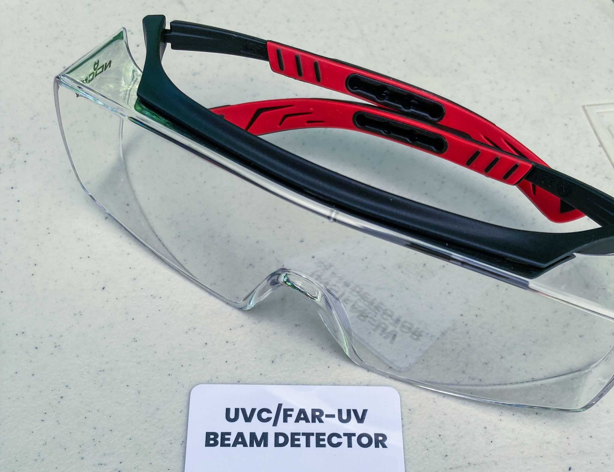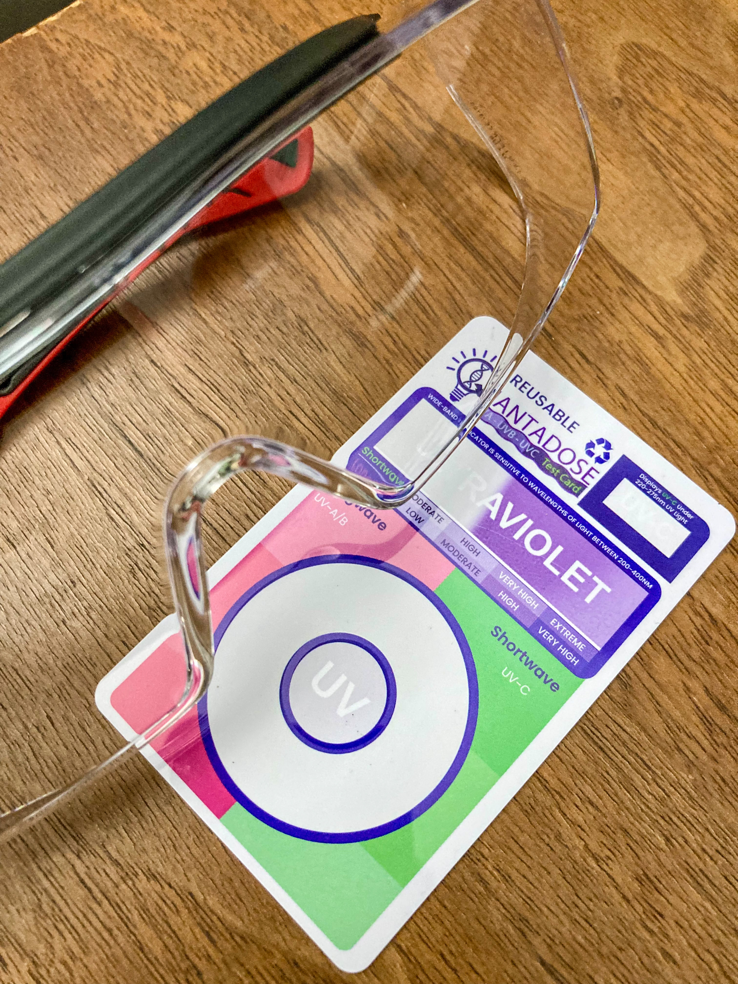 In the beginning I was wary of staring at UV light produced by the flashlight. I bought a pair of ANSI Z87-rated safety goggles, to wear over my prescription glasses. These safety goggles blocked out all UV rays, just like my sunglasses. But they were clear, so they didn’t affect my color perception. I was able to interpret color (hue) changes on the tester card accurately, while wearing them.