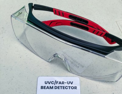 Suppose the flashlight does emit UV rays. How do I know my eyes are not being damaged looking at the UV light reflecting off the tester card? Ah, OK. I should wear a pair of safety goggles certified for UV400. But if I wear these goggles and they actually block out all UV lights, then how do I see the card react to UV rays from the flashlight?
