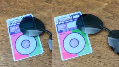 Most inexpensive UV tester cards can only indicate the presence of any UV rays this way, but cannot distinguish between UV-A, UV-B and UV-C. Some cards can distinguish between UV-A/B and UV-C using a different mechanism (e.g. the two concentric circles), but even those can’t tell UV-A apart from UV-B. If you conduct this experiment under direct sunlight instead of a UV-A flashlight, then you can’t actually be sure that an untinted white part of the test trip is an indicate that both UV-A and UV-B rays are blocked out by your sunglasses. Perhaps the test strip doesn’t even react to UV-B at all (unlikely though).
