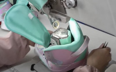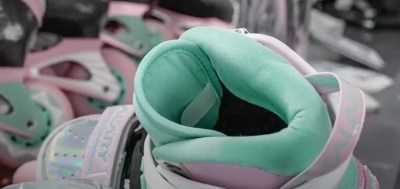Urban skates usually come with a toe strap, making precision lacing less important. In this step, strap retainers are stitched onto the upper, together with a flexible toe guard.