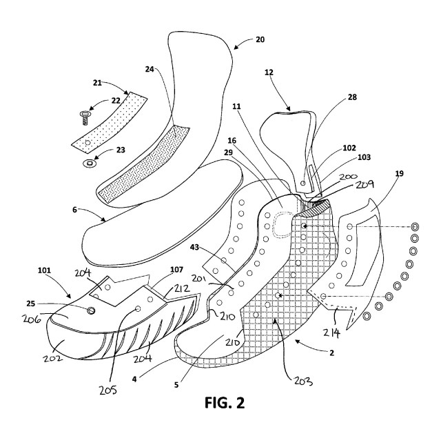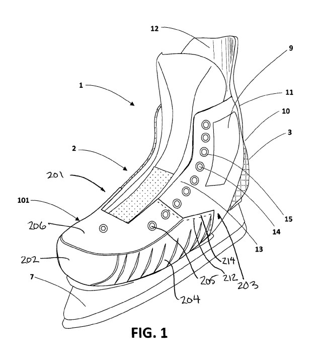 In 2016, True Temper Sports (TRUE Hockey) acquired VH Footware Inc. from Scott Van Horne. Today, custom TRUE hockey skates are made basically to the specification Horne wrote in his 2017 patent. Horned described these as “monocoque body” skate boots. Drawings from the patent illustrates this way of making carbon-fiber hockey skates.