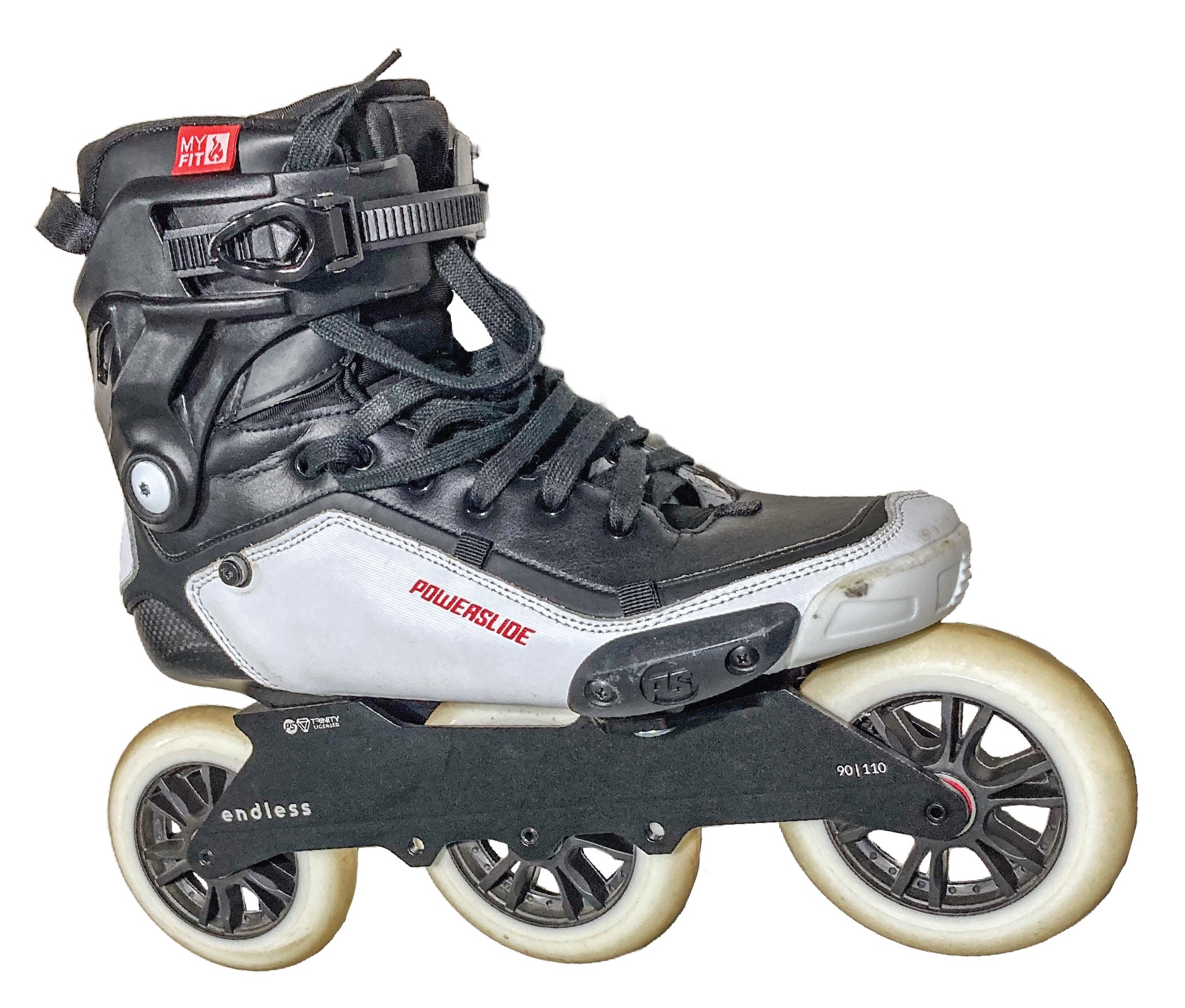 As mentioned in Big Wheels on Carbon Hockey Skates, I put Endless 90 Trinity Frames on them, and mounted three 110mm wheels on these frames. I love that the Tau does not come with annoying front straps. I also removed the 45° buckle on my boots. I lace my boots with runner’s loop instead. That locks in my knee firmly, without the pains that those 45° buckles brought me. More on this skin-chafing issue later.