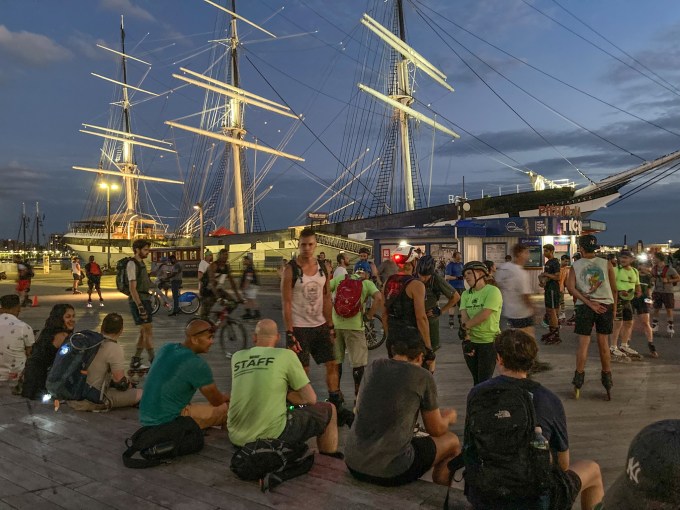 Wednesday Night Skate NYC is also known as WNS NYC. It’s one of several well-established groups in the city. Some say it’s the biggest group of them all. WNS is run by volunteers since the late 1990s. Every Wednesday from April to October, weather permitting, organizers show up wearing yellow-green vests at the south-side steps of Union Square around 7:45pm. By then a sizable crowd of skaters have already gathered at the steps. At 8pm an organizer gives a brief safety speech and introduces the route planner of the week, as even more skaters materialize all of a sudden at the steps. One organizer is appointed the leader of the day, and another the sweeper of the day. Folks are told not to skate ahead of the leader. The sweeper makes sure to leave no skater behind. Shortly after, skaters launch like a swarm of giant locusts, to descend upon the streets of New York City at dusk. The leader signals followers to take breaks at pre-designated stops along the route, so that the rest of the group may catch up, with the sweeper being the last person to arrive at each stop. The route circles back to Union Square, where a day’s skating concludes. Continue reading